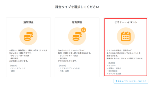 • 課金タイプが「セミナー商品(セミナー・イベント)」である
