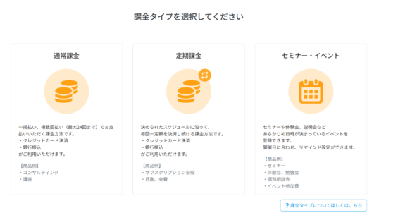 「通常課金」と「定期課金」「セミナー・イベント」より、ご希望の課金タイプを選択します。