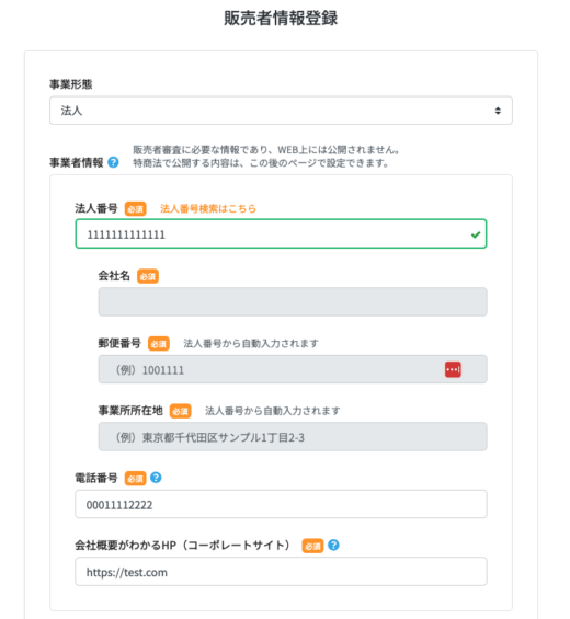 販売者情報登録フォームでご登録いただいた内容です。
