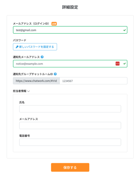 任意で、担当者の情報を記載することができます。